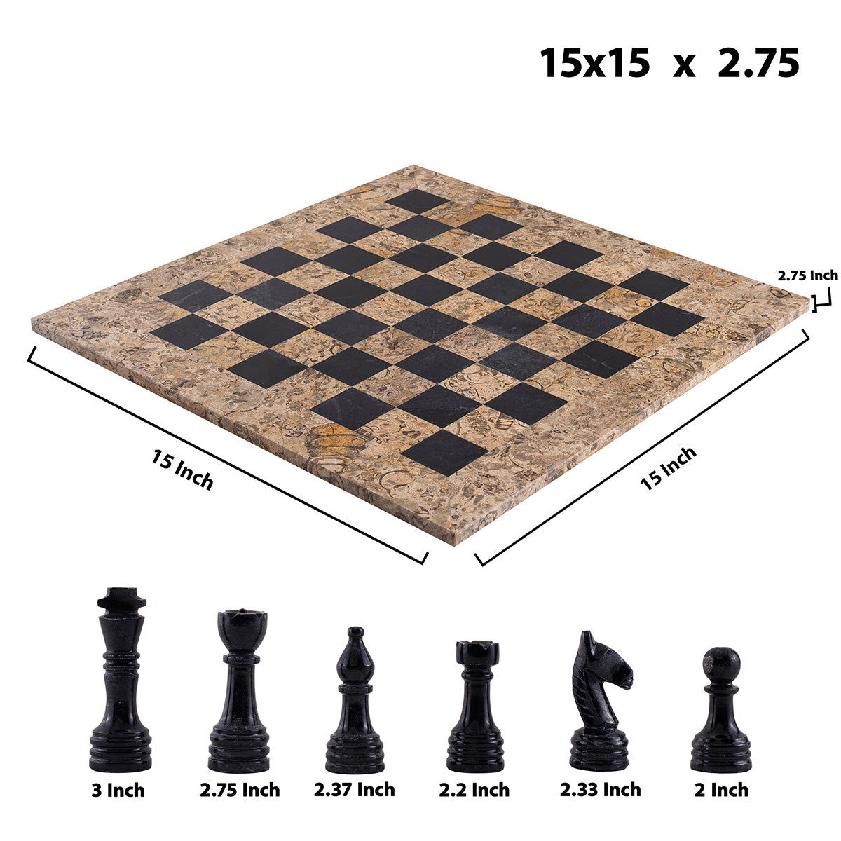 Pinecone & Black Luxury Marble Chess Set (15"x15")
